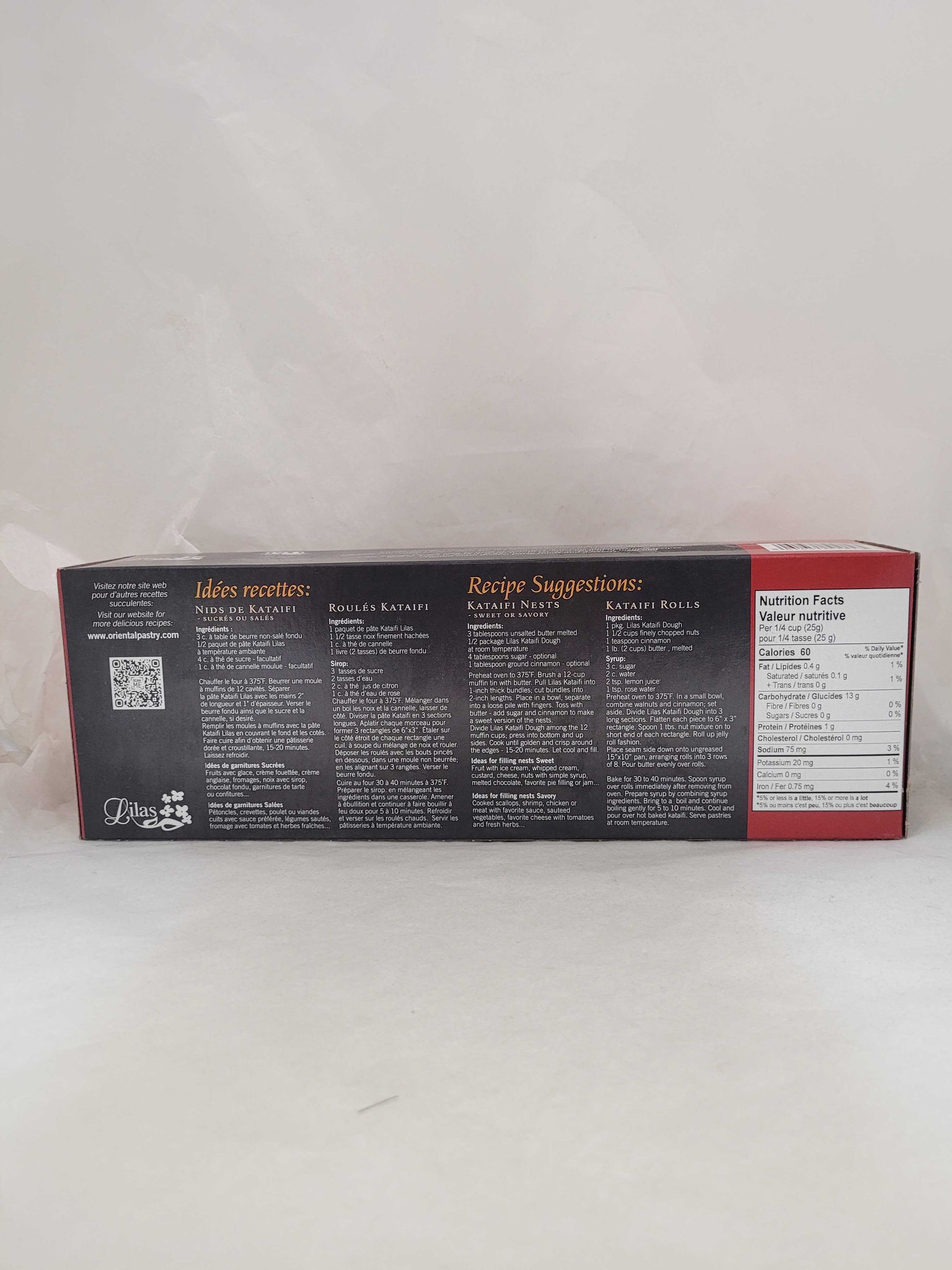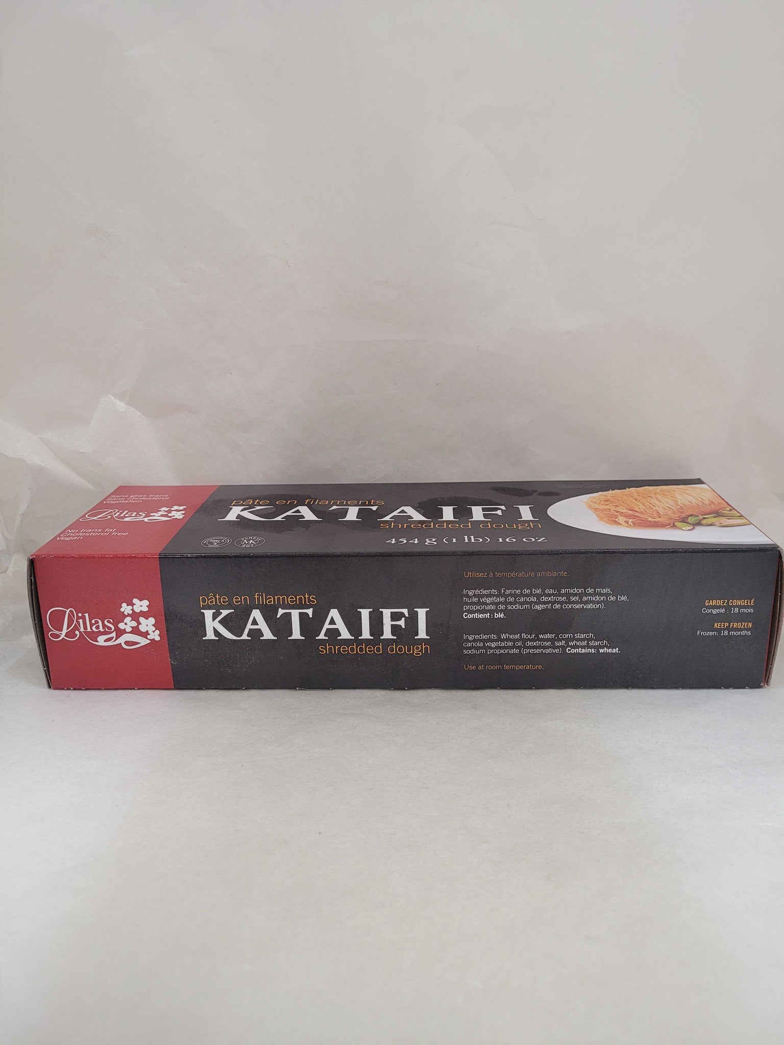 Bring home the authentic taste of Middle Eastern and Mediterranean desserts with Lilas Kataifi Shredded Dough 454g, available at Super Khorak. This finely shredded phyllo dough is perfect for creating traditional treats like Knafeh, Kataifi nests, and baklava rolls. Light, versatile, and easy to work with, Lilas Kataifi bakes to a golden, crispy finish—ideal for both sweet and savory recipes. Keep it in your freezer and impress your guests with homemade delicacies.