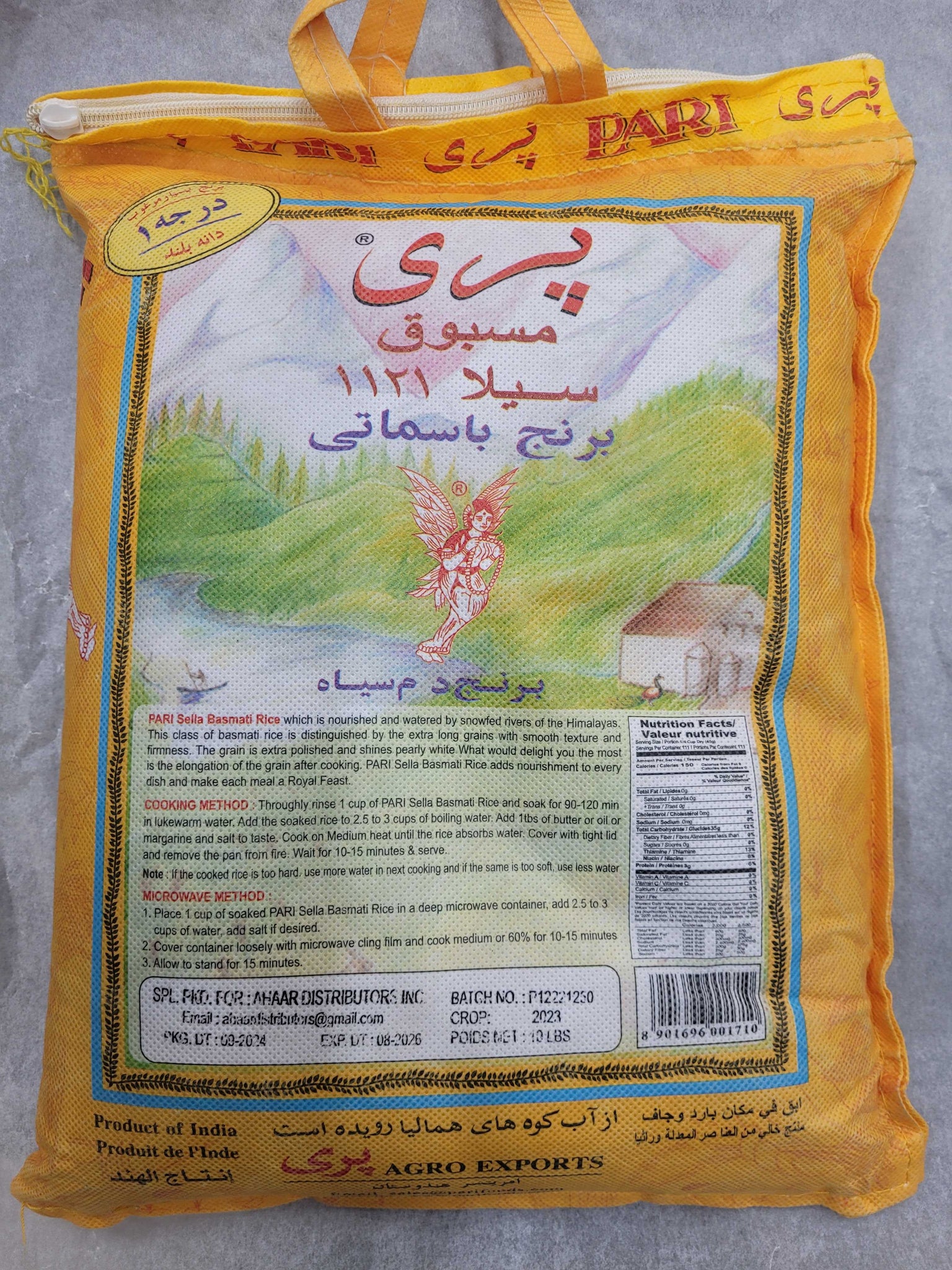 Pari Parboiled 1121 Sella Rice (10lbs) – a premium long-grain rice ideal for flavorful biryanis and everyday dishes. Naturally aged for superior taste and texture. Buy now at Super Khorak!