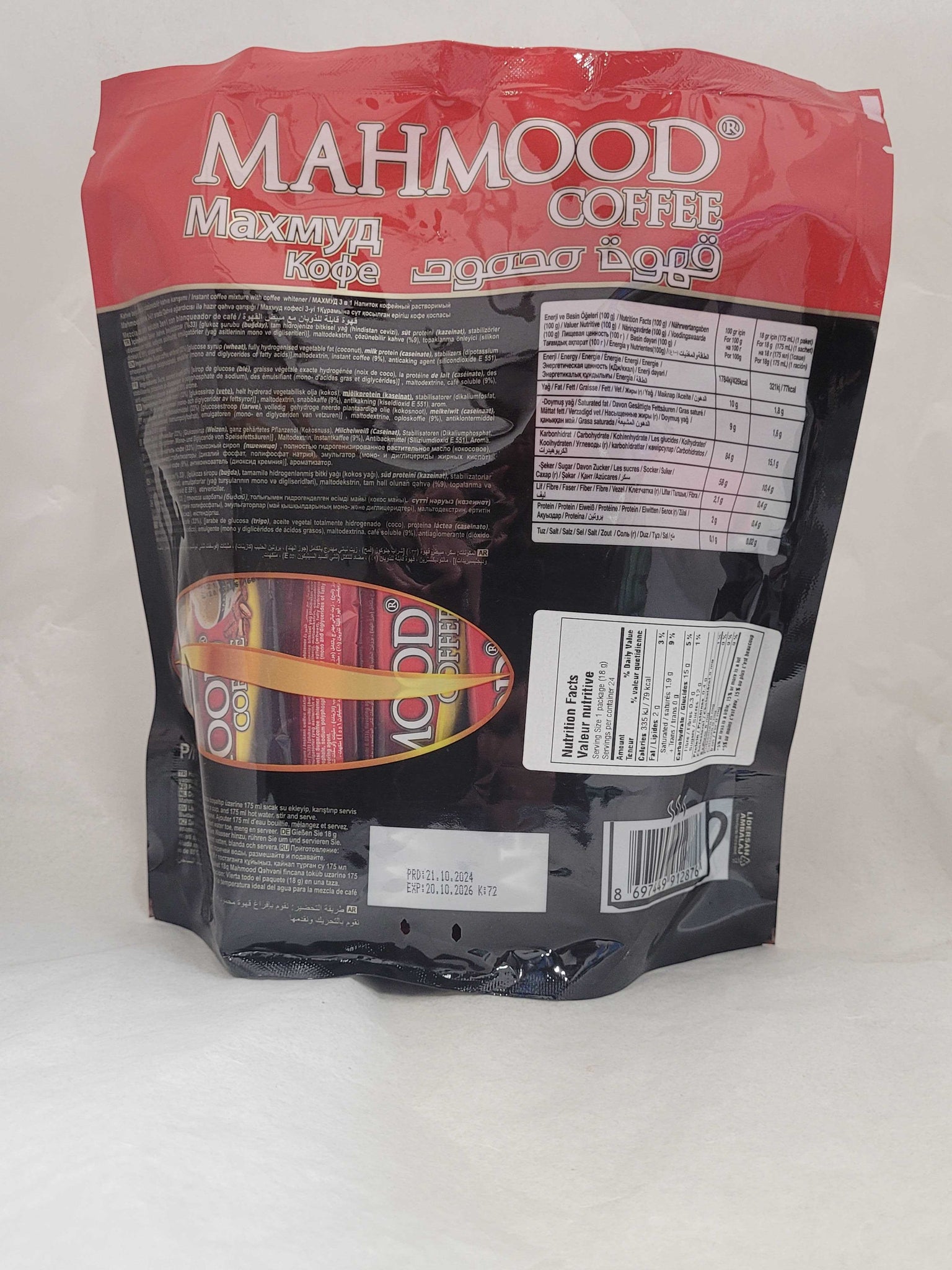 Mahmood Coffee 3 in 1 24x18g offers the perfect blend of instant coffee, creamy milk, and just the right touch of sugar—conveniently packed in 24 single-serve sachets. Ideal for busy mornings or quick coffee breaks, this popular Middle Eastern favorite delivers smooth flavor and a balanced taste in every cup. Just add hot water, stir, and enjoy premium coffee in seconds.